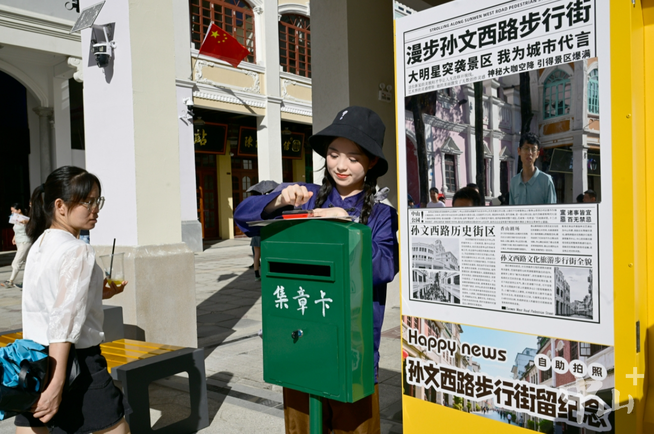 在大庙下广场,头戴报童帽、扎着双麻花辫的NPC叶晶晶热情邀请游客一同吆喝“卖报,卖报!”打卡拍报亭后,现场可生成“孙文西路纪念报”并打印,这份怀旧道具成为不少人拍照留念的“心头好”;若选择前往香山商业文化博物馆,与典当行掌柜互动答题,同样能收获印章。