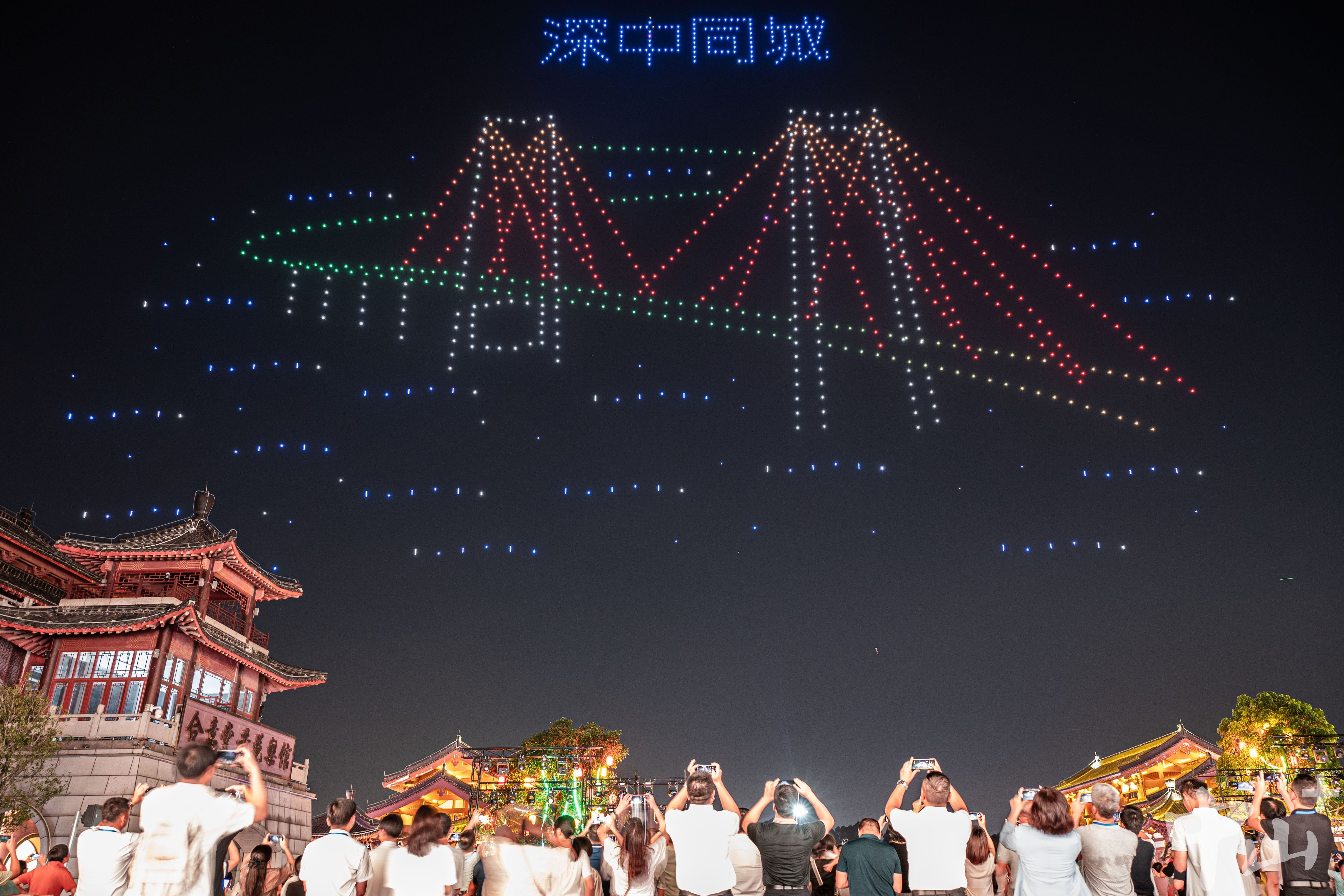 9月30日晚,大涌红博城华灯璀璨,“红博城·隆都之夜”活动在此举行。千架无人机以天为幕、以光为笔,在夜空中变幻出“盛世中华”“红博不夜城”图样,赢得满堂喝彩。夜空映照下,古风集市红火启动,为红博城带来满满活力。