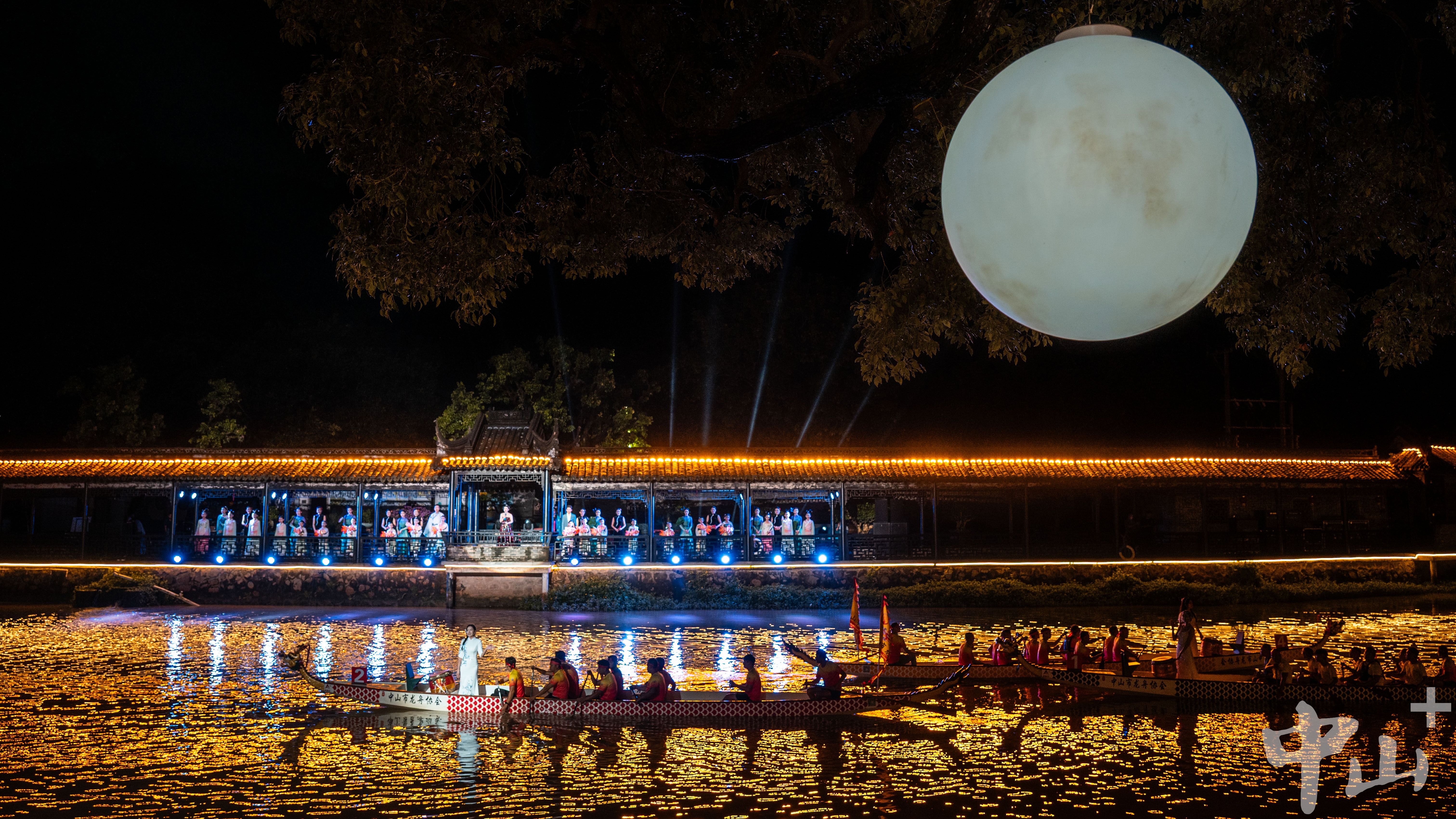 中秋月圆夜,北溪河畔,古典雅致的灯光与现代光影技术交织,将南区街道“十里画廊”勾勒得如梦似幻。龙舟健儿挥桨竞渡,古风歌舞船头上演,原汁原味岭南民俗吸引大批市民游客观看。