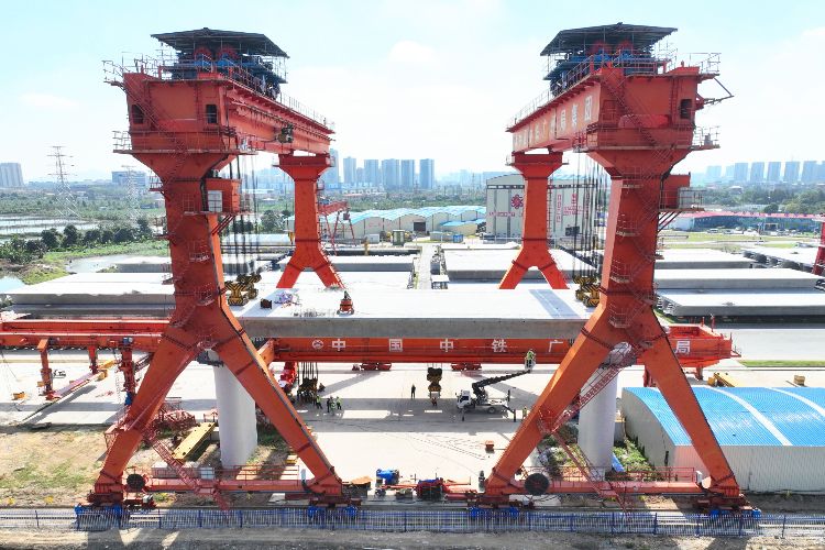 10标段首片箱梁架设成功!深江铁路建设刷新进度
