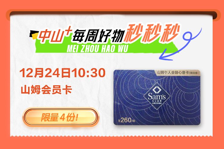 今天10:30,99元秒杀山姆超市会员年卡!先到先得,拼手速→