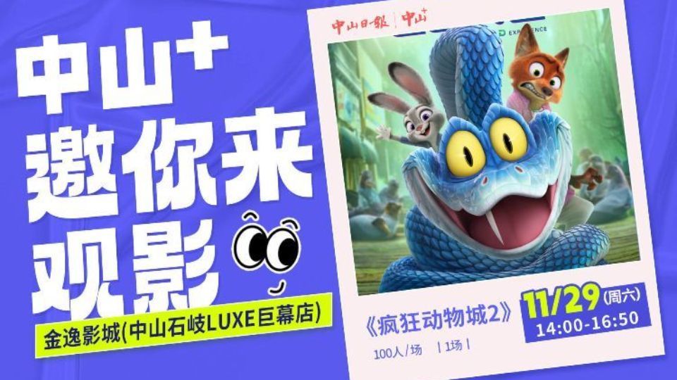 【免费观影】“中山+”邀130位粉丝看《疯狂动物城2》,与朱迪尼克再冒险