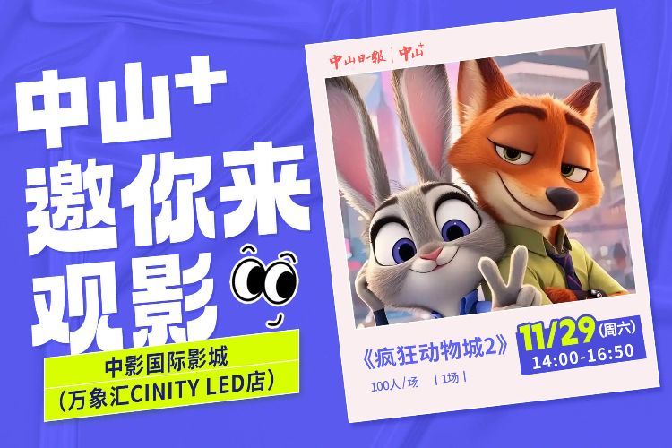【免费观影】“中山+”邀130位粉丝看《疯狂动物城2》,与朱迪尼克再冒险