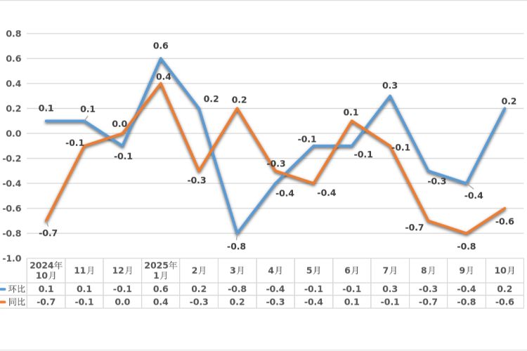 10月份中山居民消费价格同比下降0.6%,环比上涨0.2%