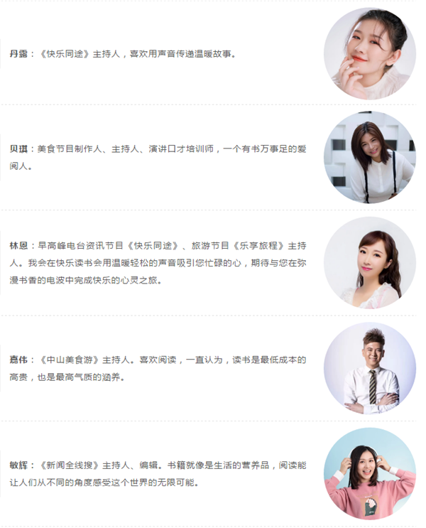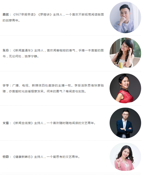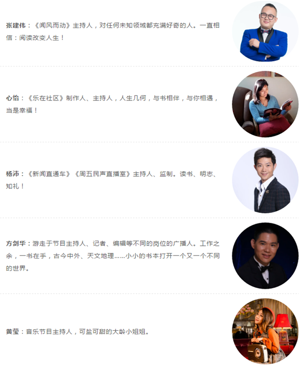 快乐读书会还将开展“我是朗读者”征集,只要好朋友们用朗读的方式推荐好书即可参加,内容为推荐理由和原文朗读两部分,优质音频将获得在电台相关节目中播出的机会。