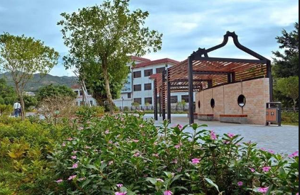 晨曦照草野,伴君进东华,踌躇满志;落照傍西山,健步穿花径,洗尽尘忧。(注:东华村,在汕头市潮南区,系新农村建设典范。)