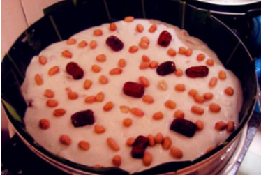 母亲蒸年糕也是一流的。只见母亲先将糕面放进面盆,一边慢慢地把温水细细倒入面中,一边用一小擀面杖不停地顺着一个方向猛搅。搅得越匀越好,既防夹生,蒸出的年糕也晶莹光滑。搅好糕面,母亲便抓起一把湿面做成面团,不时蘸着凉水,在面团上按一小窝,然后放在锅帘上蒸。此时的火烧得越旺越好,只见灶锅门口烧火的父亲使劲拉着风箱,火苗呼啦啦地往外窜。我们兄妹几个则心急火燎地等待着,看着糕锅冒热气,馋的直流口水。每当此时,母亲都会笑嘿嘿地说:“等着,等着,心急可吃不了热年糕的。”糕熟后,母亲让我们每人吃一个,香甜的滋味钻进鼻孔,管它烫不烫嘴,转眼工夫便吞进了肚子里。