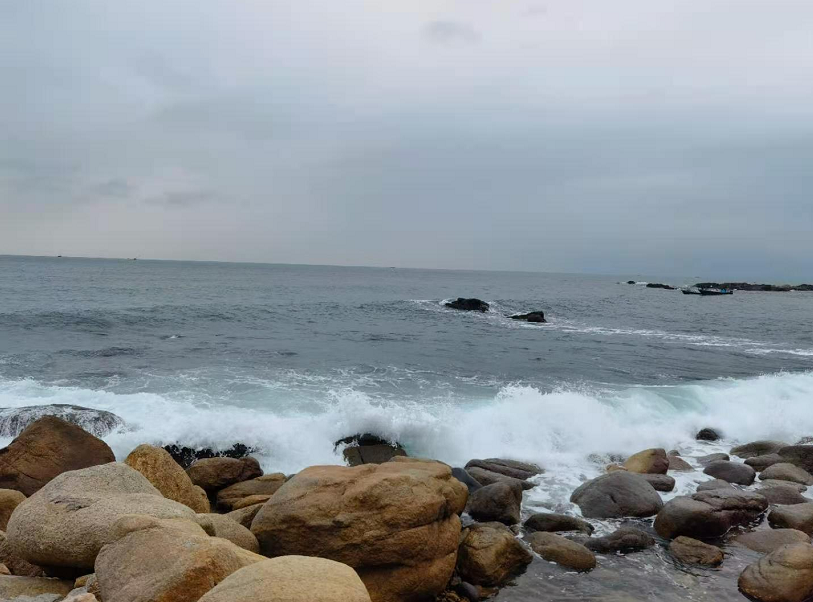 震天的涛声阵阵传来,“哗……哗啦啦……”海浪簇拥着岸边的礁石,反复扑打着,冲刷着,时而汹涌跃起,时而低沉婉转。声音,如啸,似鸣,若呢喃;动作,如舞,似跳,若嬉戏!观他们缠缠绕绕、琴瑟和鸣、不离不弃的样子,恍若尘世间夫妇的美好模样!婉转的涛声,犹如浪花对礁石的诉说:“君当是磐石,妾当是浪花,浪花情绵绵,磐石无转移……”这样的美好,让我有一刻的恍惚!