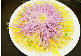 餐菊,尤其是将菊花制作成承载美味佳肴的菊花宴席,正是菊城人创造的美食文化。这与菊城人的渊源、菊缘、菊情紧密相关。