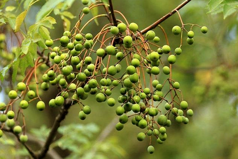 时光从苦楝花到苦楝果一点点演化,楝花不断把烂漫记忆献给夏阳,淡紫的身姿犹如传神的水粉画,描画出紫色的浪漫抑或馨香梦幻。生如楝花盛放,那紫光是否照进了诗人的梦里?卧听风吹骤雨,轻吟一句“簌簌清香细”,那梦一样的紫是否充盈着楝果的记忆?秋天,当楝花化为一枚枚楝果,一簇簇坠在树梢,翠绿油光,似玛瑙般耀眼,如葡萄般惹人垂涎。