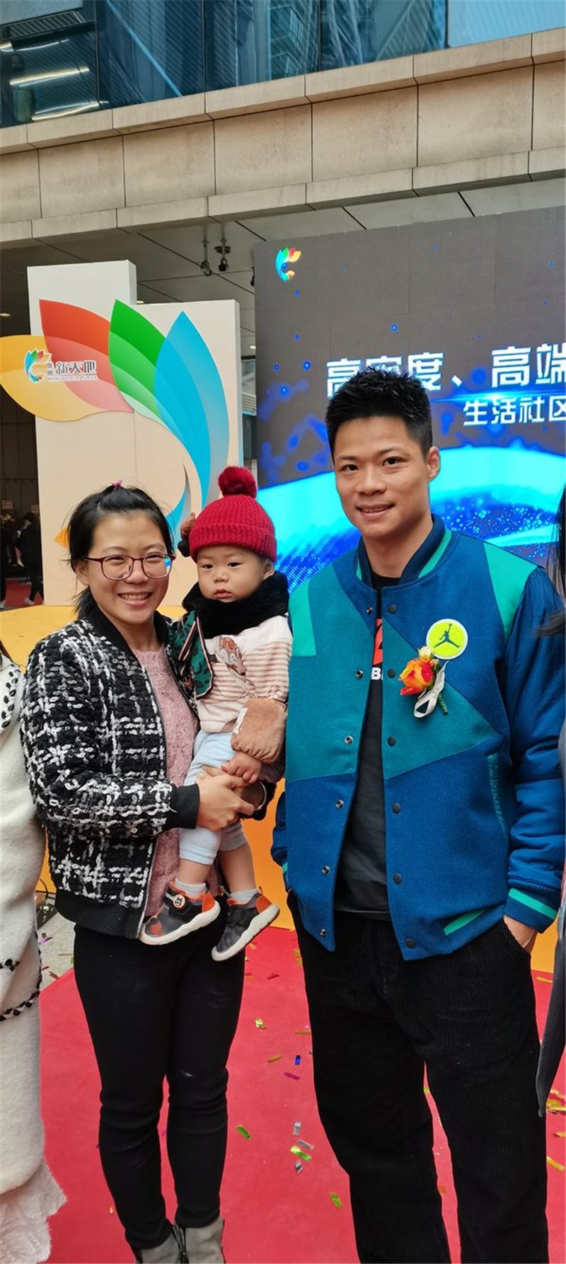▲招小姐:合照是2020年圣诞节当天拍的。苏炳添那天受邀参加活动,他一直在看我家的宝贝,可能想到他家的天天吧,可惜宝贝没有回应他。但散场时,他非常友善和我们合影。我要等孩子大了,把照片给他看,学习苏炳添坚持不懈、挑战自我的精神。