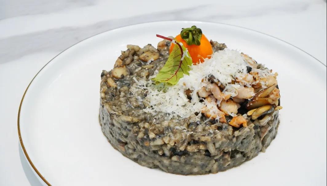 最后的两款主食还是很有亮点的。黑松露牛肝菌鸡肉烩饭,米饭粒粒饱满劲道,满口生香,黑松露抢味。
