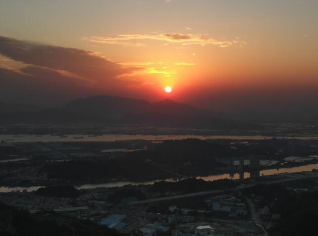 夕阳渐渐西下,悬挂在山峦上的落日斟一壶老酒,西江水醉得酡红。我也醉了,忍不住双手捧起落日,捧起黄昏天地间的大美。