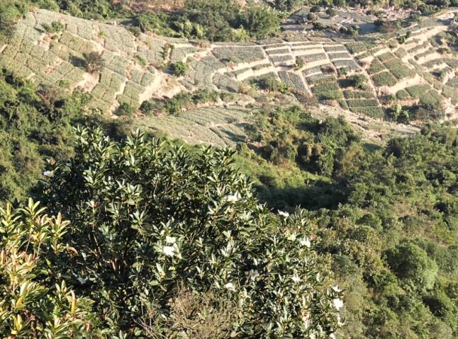 那野生的山茶花洁白如雪,陡峭地散落,让人只能远观。