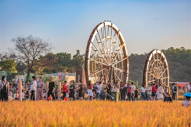 2016 年秋季,我第一次去左步村,正是稻田金黄、果红瓜绿之时,丰富的色彩感和空气中弥漫着的稻香味,令我惊喜陶醉。放眼望去,水系与田园之间,一群白鹭正在嬉戏觅食,不由得让我想起了王勃在《滕王阁序》中的两句话:“落霞与孤鹜齐飞,秋水共长天一色。”