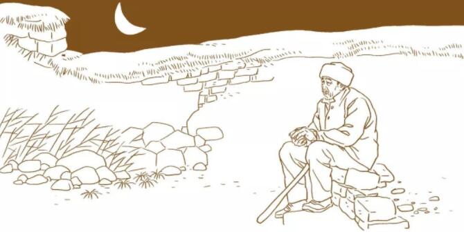 白天,我已看好地形,非常自信哭声来自邻居的老叟。踩着月影,循着哭声,我轻轻来到老人的泥墙外。果然不错,有七八位老人坐在院中,倚着老榆树,围成一个圈子,正在默默哭泣。有的哽咽,有的抽搭,有的独自抹泪。院里院外,没有言语,只有嘤嘤嗡嗡、咿咿唔唔的哭声。哭到惨痛处,吓得半边月亮赶紧躲入云层,天地为之一暗。