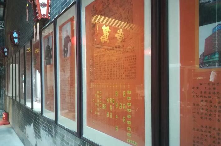 正厅后面又是一个小天井,左侧一个趟门,门外有长廊,绘有各色戏文神话人物及风景,神态逼真动人,院落宽阔,靠西偏僻处有一厨房,灶台灶具一应俱全,整个院落原做族人喜丧二事聚餐之用,能摆百许酒席。老人叹口气说:不过近年,人们已逐渐将聚餐场所移至酒楼饭店,已不复旧时热闹景象,只有年初开灯时候,才可见往昔情景了。