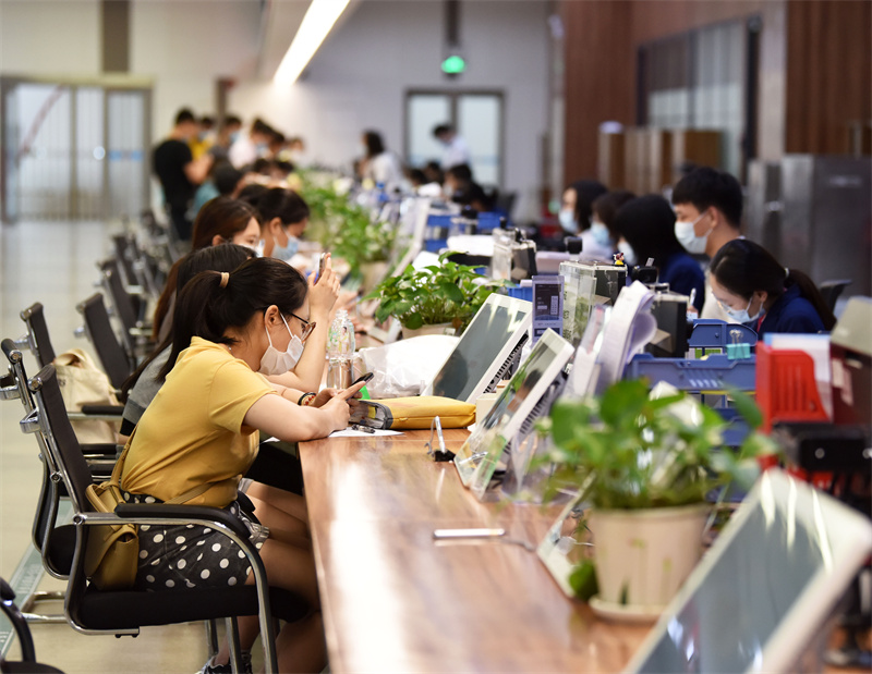 市民在中山市政务服务大厅办理业务。记者 文波 摄