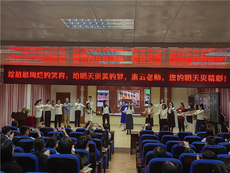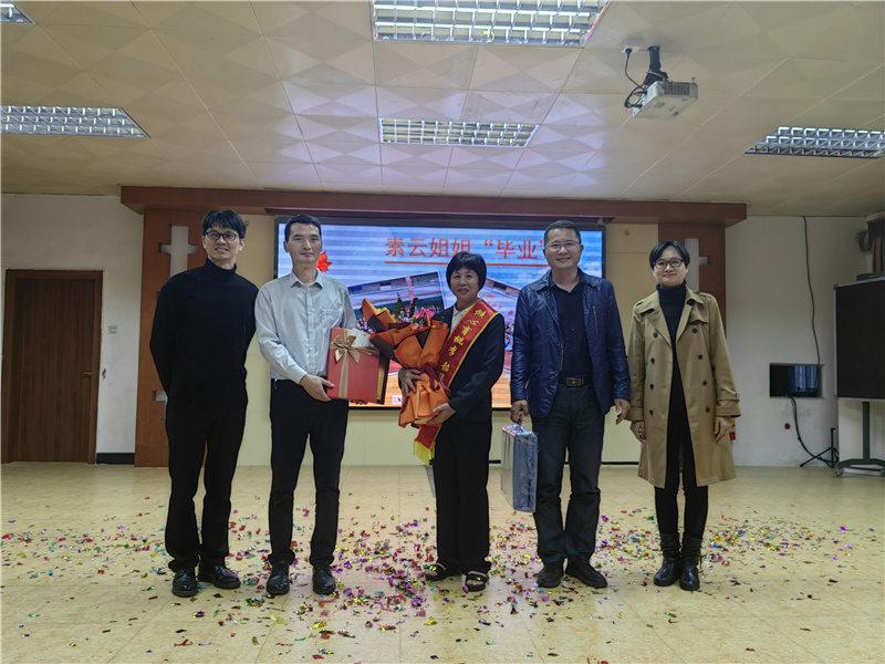 ▲退休之际,学校师生为郑素云举行了欢送会。受访者提供