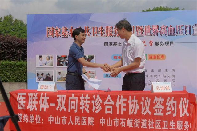 为了整合医疗资源,充分发挥医联体的优势,当天上午还举行了市人民医院和石岐街道社区卫生服务中心医联体——双向转诊合作项目签约,让社区患者能在最短时间内得到有效救治,保障居民在“家门口”就能享受三甲医院的医疗服务。
