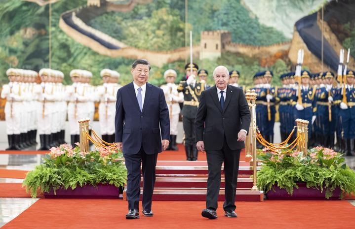 习近平指出,今年是中阿建交65周年。65年前,反对帝国主义和殖民主义、争取民族独立解放的共同事业使我们两国走到一起。65年来,中国和阿尔及利亚始终患难与共、守望相助,相互理解、相互支持,是追求共同发展和民族振兴道路上的真诚朋友、天然伙伴。中方正在以中国式现代化全面推进中华民族伟大复兴,阿方正在着力推进建设“新阿尔及利亚”。中方愿同阿方一道努力,发扬光大传统友谊,推动中阿全面战略伙伴关系取得更大发展。