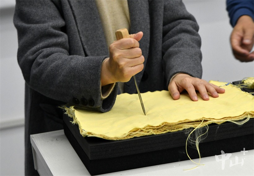 ▲防刺材料针刺测试。