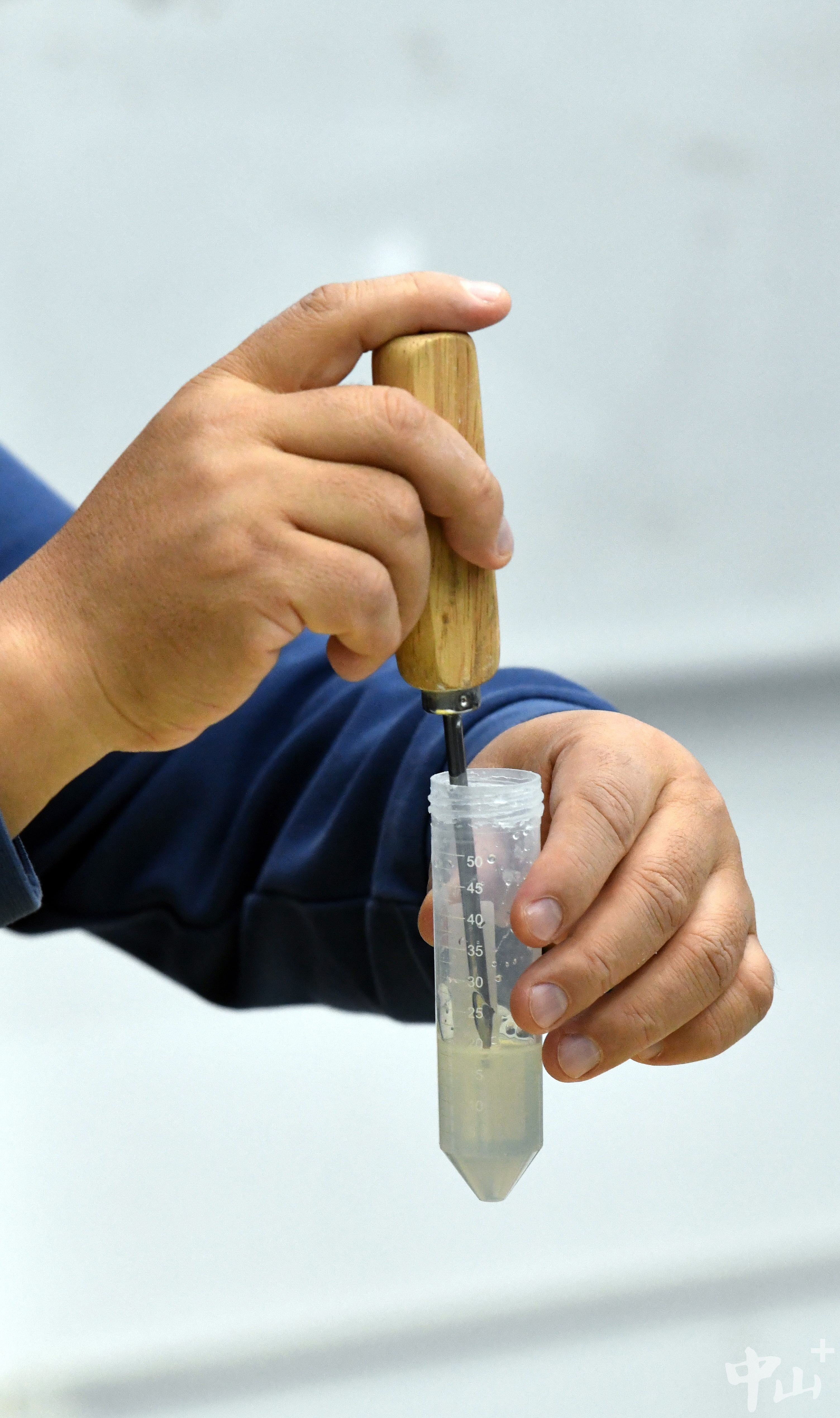 ▲试管内为纳米流体原材料。