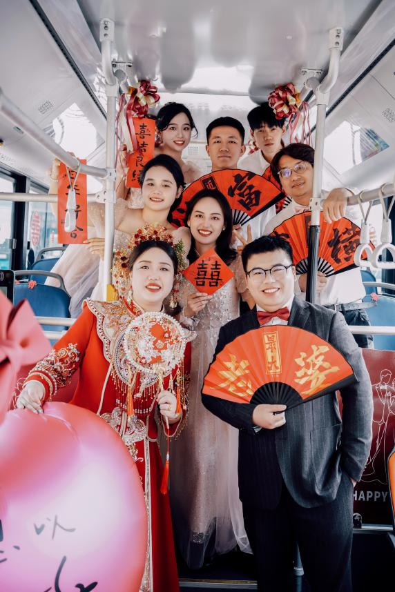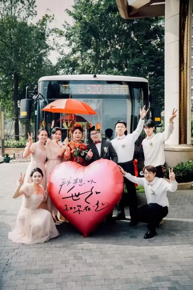 新人将分别乘坐专属婚车,与满载亲友的“幸福公交”组成一支盛大的婚车队伍,从中山人才公园出发,在中山美景中开启浪漫之游,抵达中山国际人才岛。