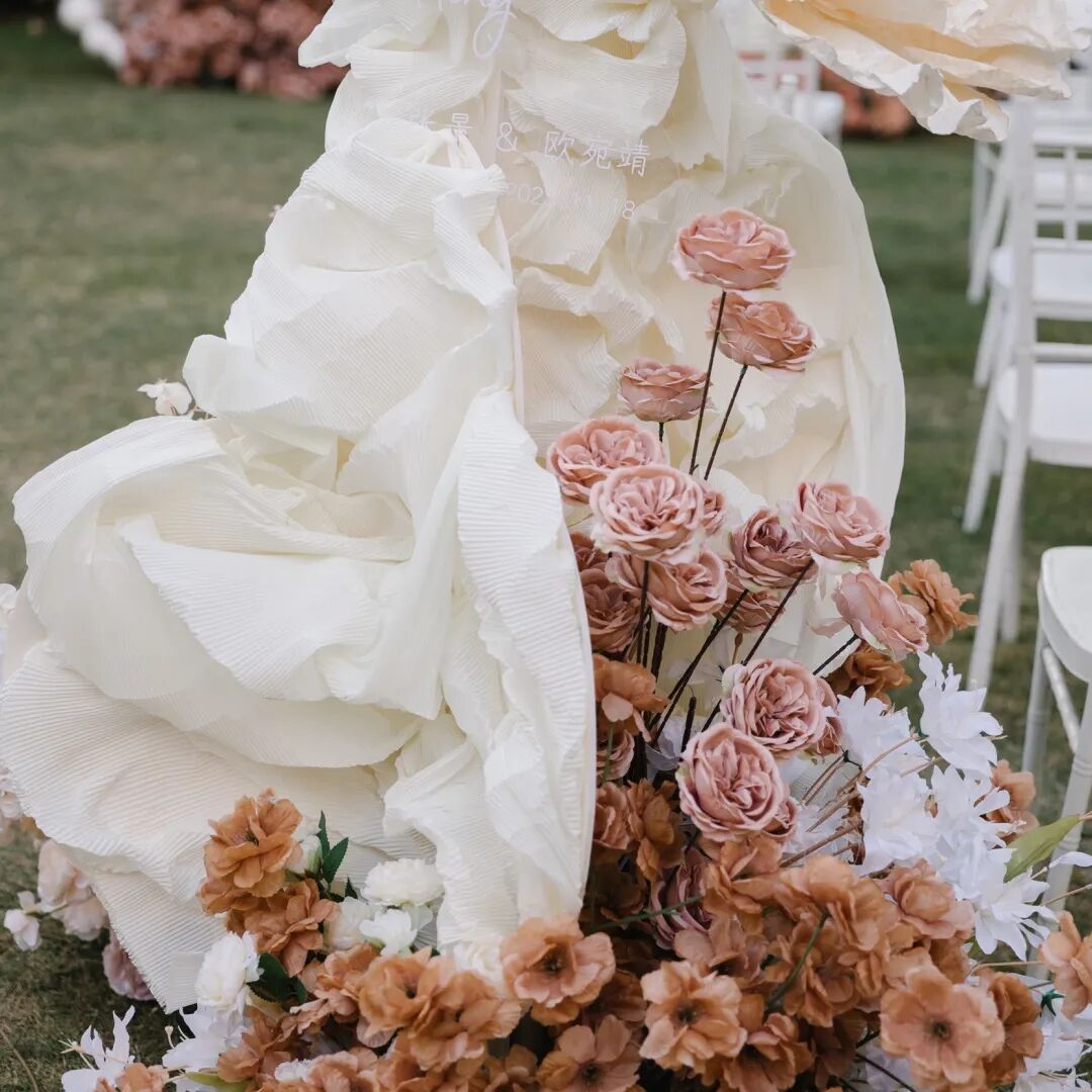 免费提供新娘婚纱服饰穿着及化妆造型服务、新郎当天化妆造型服务和茶歇、手捧花、酒店住宿、婚礼布置等一站式服务;乐队现场演奏,浪漫氛围拉满。