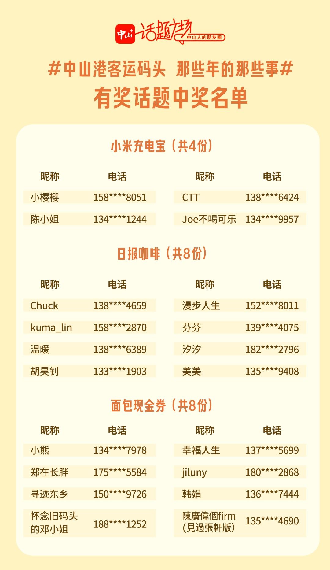获奖信息将通过短信发送至中奖粉丝,请于12月4日至12月13日(工作日9:00-12:00、下午2:30-5:00),携带身份证原件+中奖手机(工作人员验证手机号),前往中山日报一楼大堂左手边服务台签名领取。