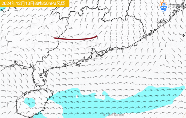 天空状况:13日冷空气刚南下,西部仍有南北风对峙,会有些弱降水,其余大部多云为主;不过等全省转为顺畅的北风后(14日起),广东省天空逐渐打开,大部晴天为主。
