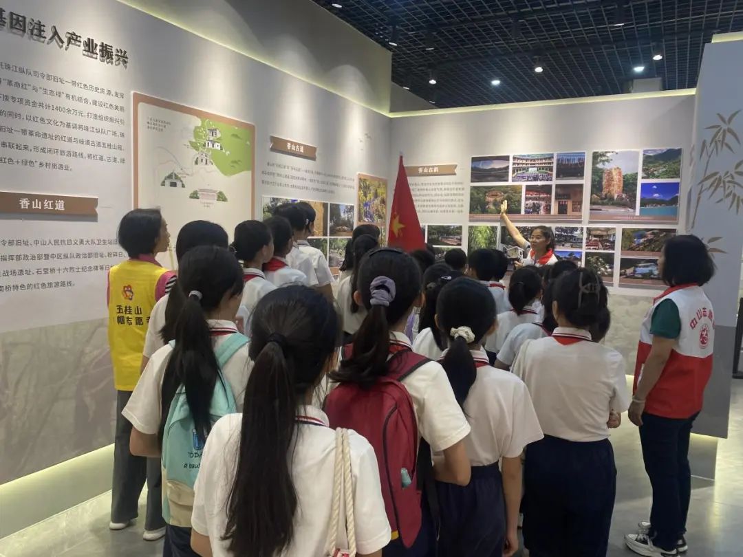 “红+绿”乡村文化旅游是南桥村的一张靓丽名片。为传承红色基因、赓续红色血脉,南桥村组建红色旅游宣讲志愿队,为“纵队革命历史文化之路”“红色美丽南桥乡村振兴之路”等旅游线路提供全程讲解服务,以真挚的情感、引人入胜的讲解,让五桂山红色精神直抵人心,红色文旅之花在南桥绚烂绽放。本月初,“南桥村红色宣讲志愿服务项目”被评为2024年中山市志愿服务助力村(社区)“百千万工程”优秀项目,《传承红色精神 点亮文旅服务之路》案例被评为2024年志愿服务社会影响案例,被“中山+”“南方+”等媒体宣传报道,在全市形成良好示范效应。