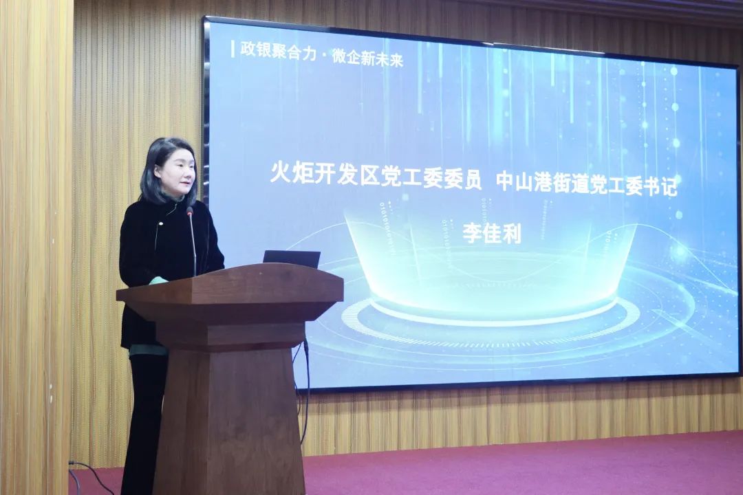 火炬开发区党工委委员、中山港街道党工委书记李佳利在致辞中指出,小微企业是推动社会就业和创新的重要力量,当前,火炬开发区建立小微企业融资协调工作机制,充分发挥“政府+银行”的叠加效应,推动从供需两端发力,统筹解决小微企业融资难和银行放贷难的问题。同时,区相关部门致力当好企业和金融机构的“连心桥”“贴心人”,多渠道、常态化为银企合作提供平台,协同发展,助力全区经济社会高质量发展。