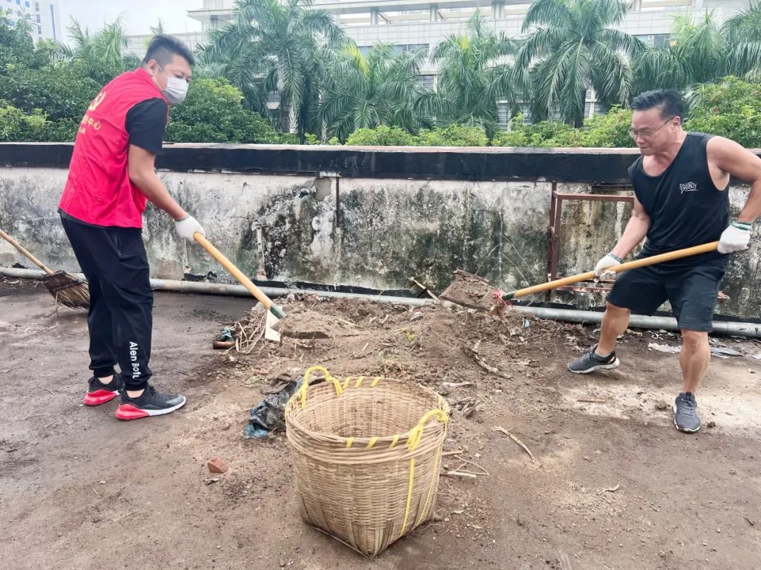 竹苑社区共建单位广东广电网络中山分公司、中山移动城区分公司、中山农商银行东区支行针对松苑新村银河阁平台的杂物和积存垃圾问题迅速展开专项清理行动,攻坚克难清理杂物垃圾,使平台恢复了整洁开阔的面貌,为居民提供更加舒适的公共空间。
