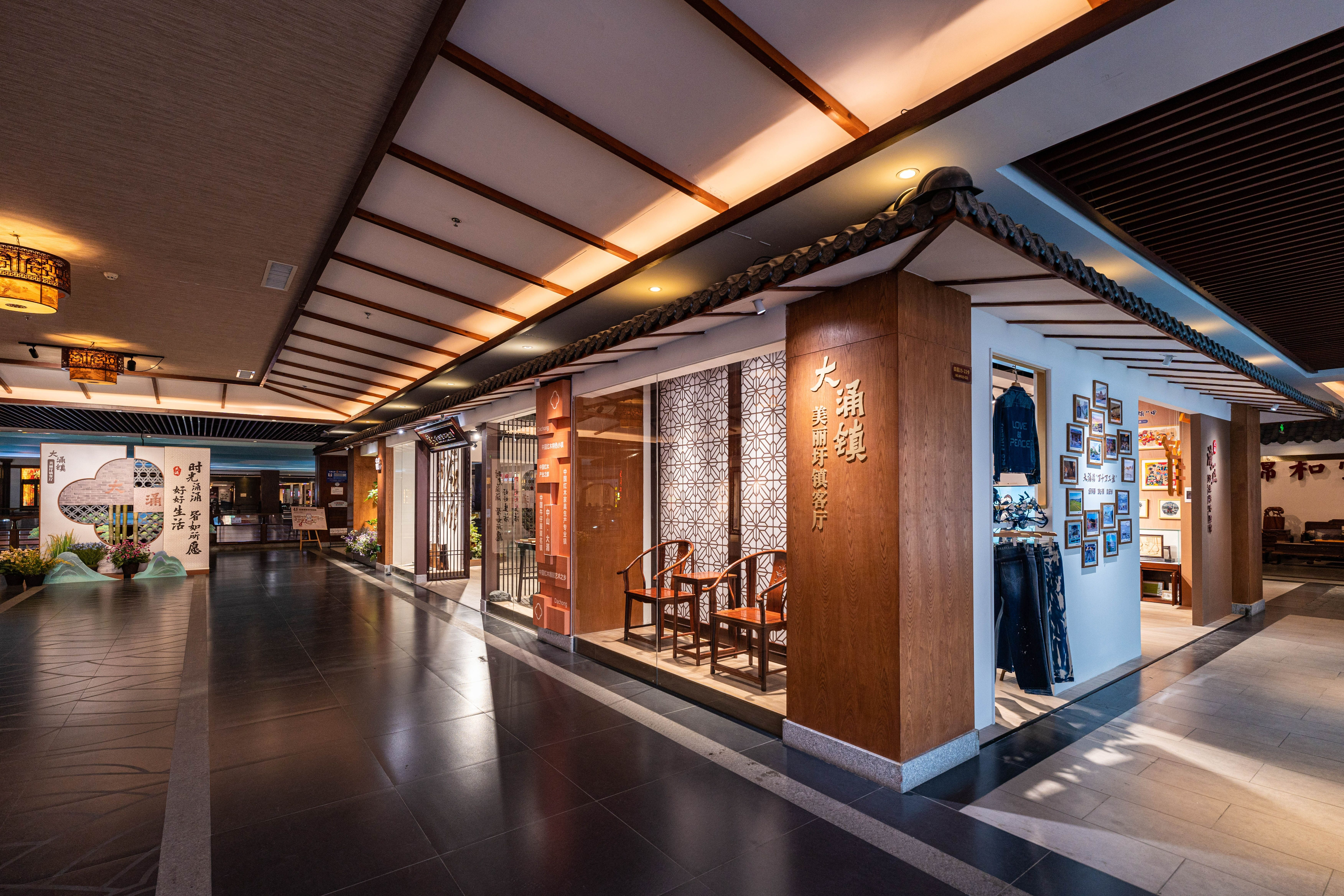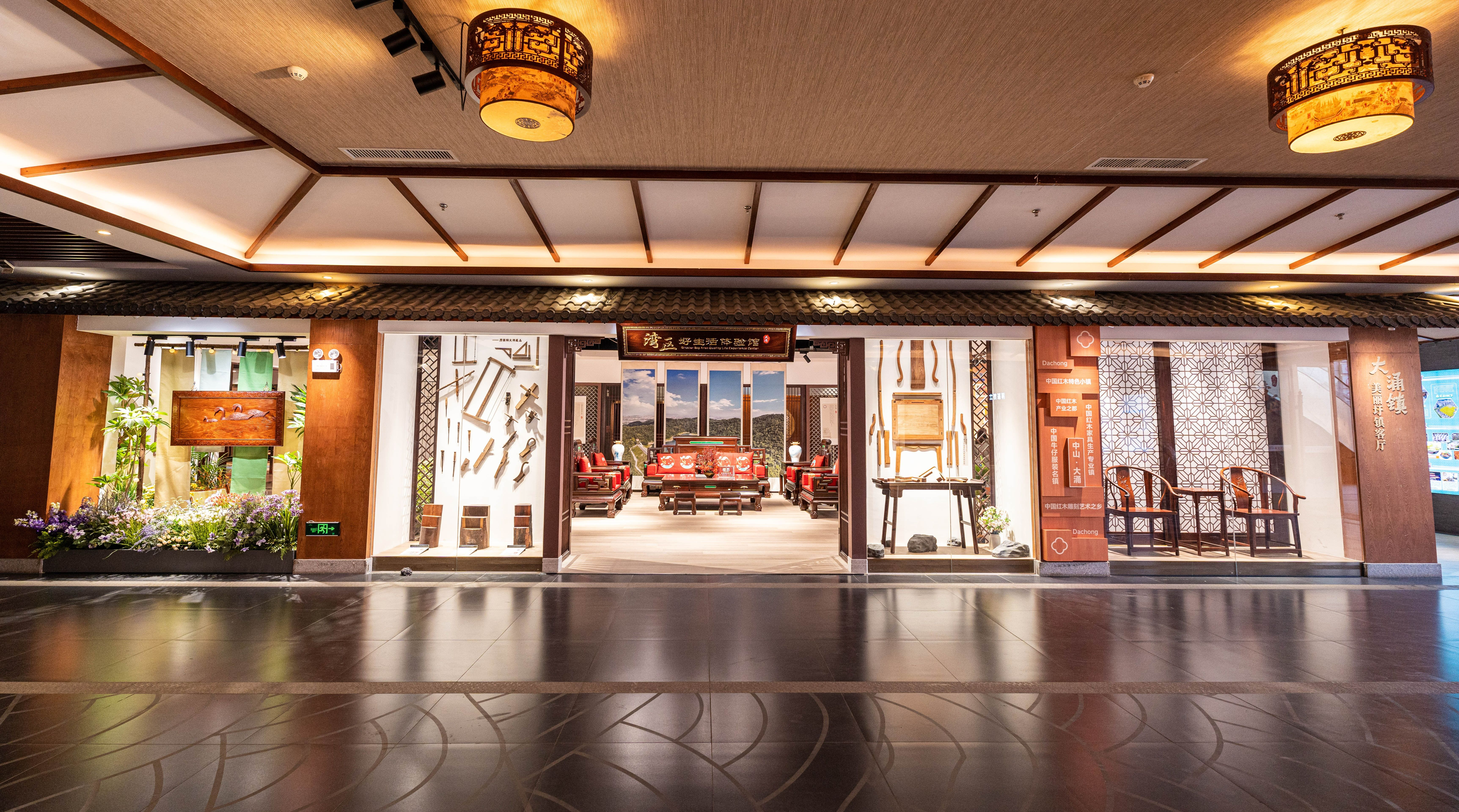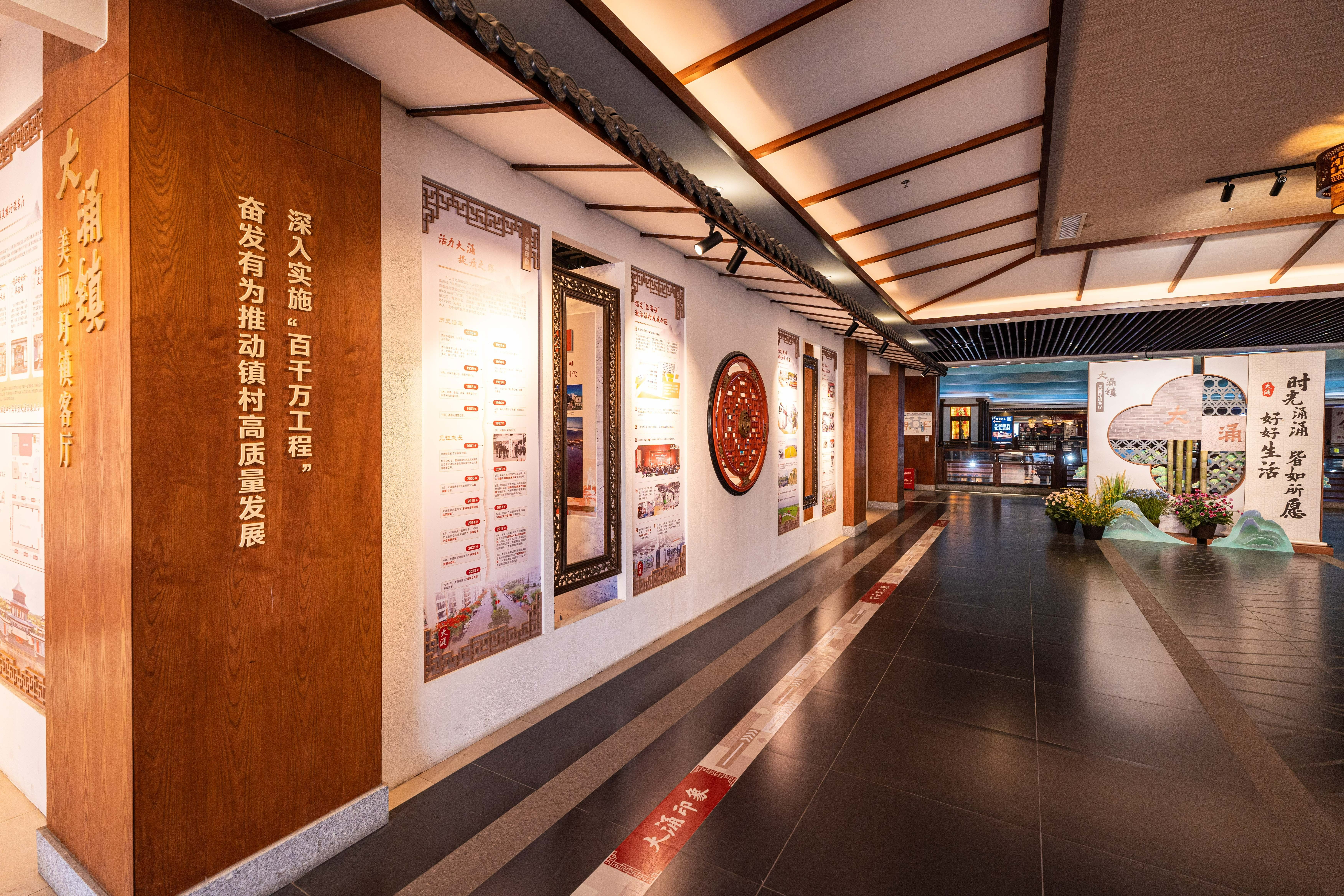 大涌镇美丽圩镇客厅深入挖掘大涌本土隆都文化、红木文化、产业文化等元素,通过图文展示、产品陈设、场景打造、氛围烘托以及对特定体验过程的设计,做到步步皆景、处处怡情,让群众对小镇产生美妙而深刻的印象,并获得精神上的愉悦和满足。