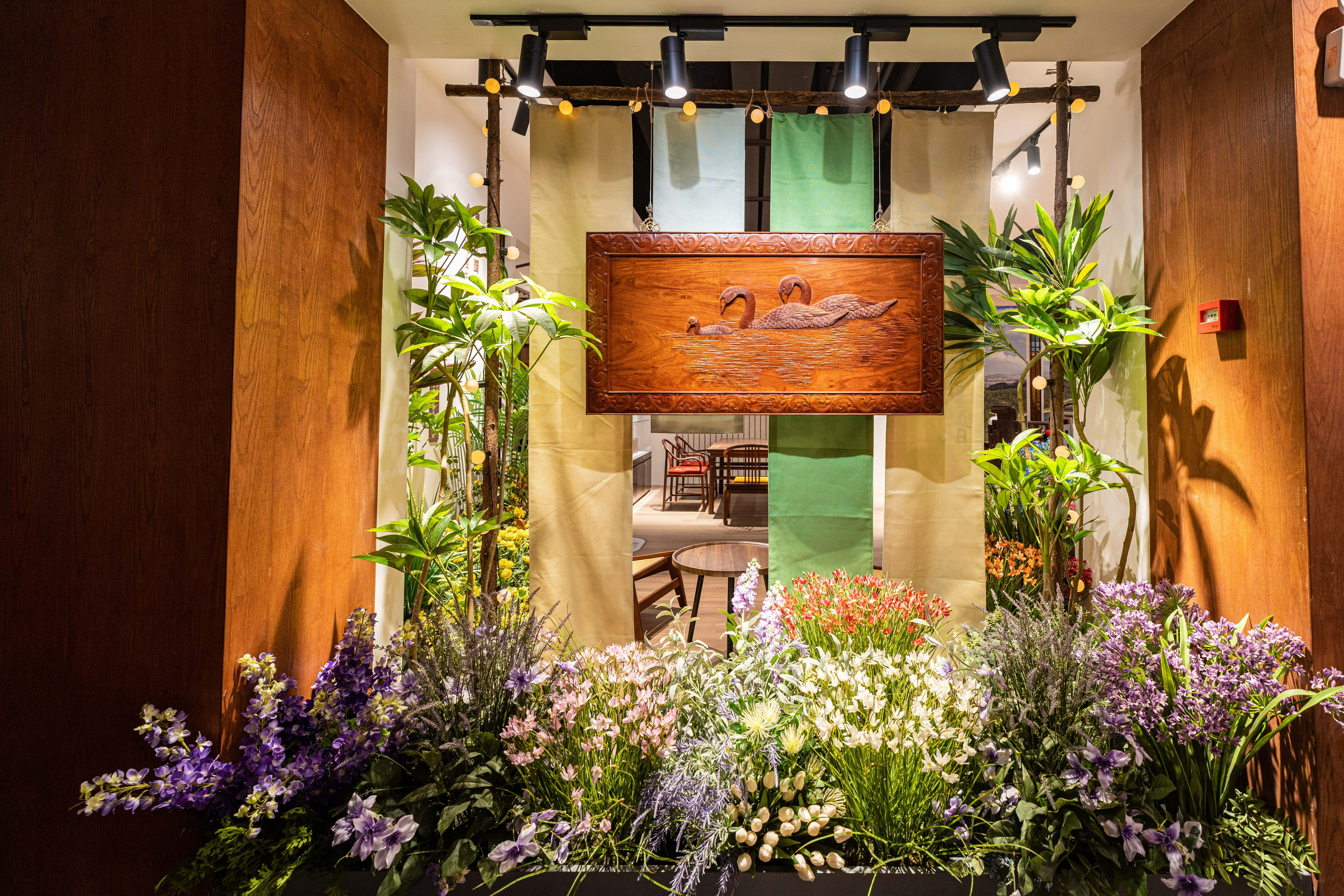 中国(大涌)红木文化博览城免费提供场地,负责客厅日常管护;中山维晋服装有限公司全程参与大涌牛仔体验区的方案设计、背景制作、场景布置、家具定制等环节;中山市檀荟红木家具有限公司依托企业红木资源优势,用红木制作“湾区好生活体验馆”牌匾,提供榫卯部件、红木家具等供展示体验;中山华泰工艺制品有限公司生产的装饰花十分精美,企业设计师亲临展厅布置现场,营造“美丽庭院”意境;中国移动通信集团广东有限公司中山分公司利用数字化技术优势,提供AI数字人供展示,为客厅实现线上导览、导购的延伸功能;中山市大自然格瑞新型材料有限公司提供了新型材料地板供展厅使用;中山市锦和堂红木家具有限公司主动参与客厅建设,提供高端家具供使用体验;中广测中山检测技术有限公司提供了多款木材供科普展示……