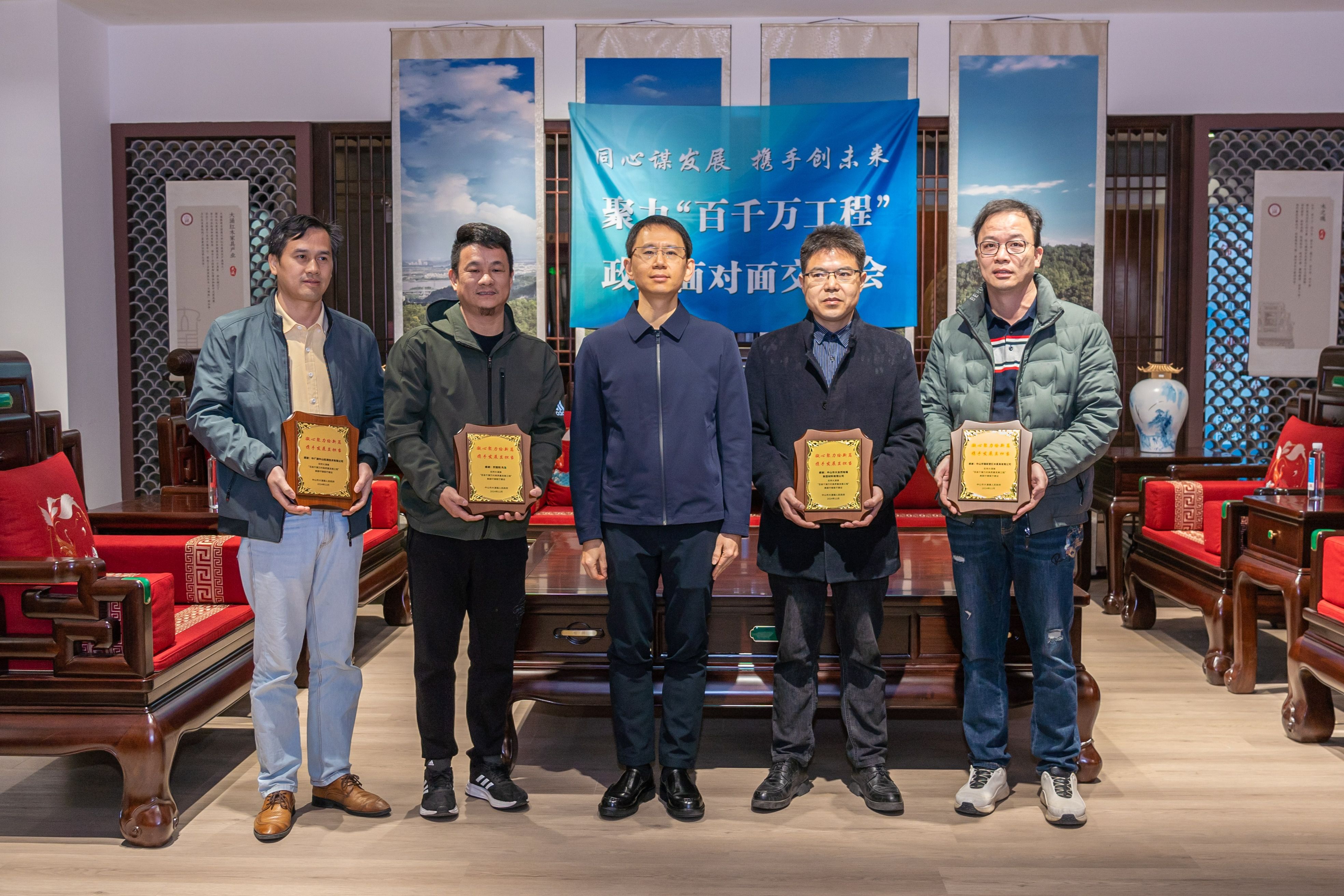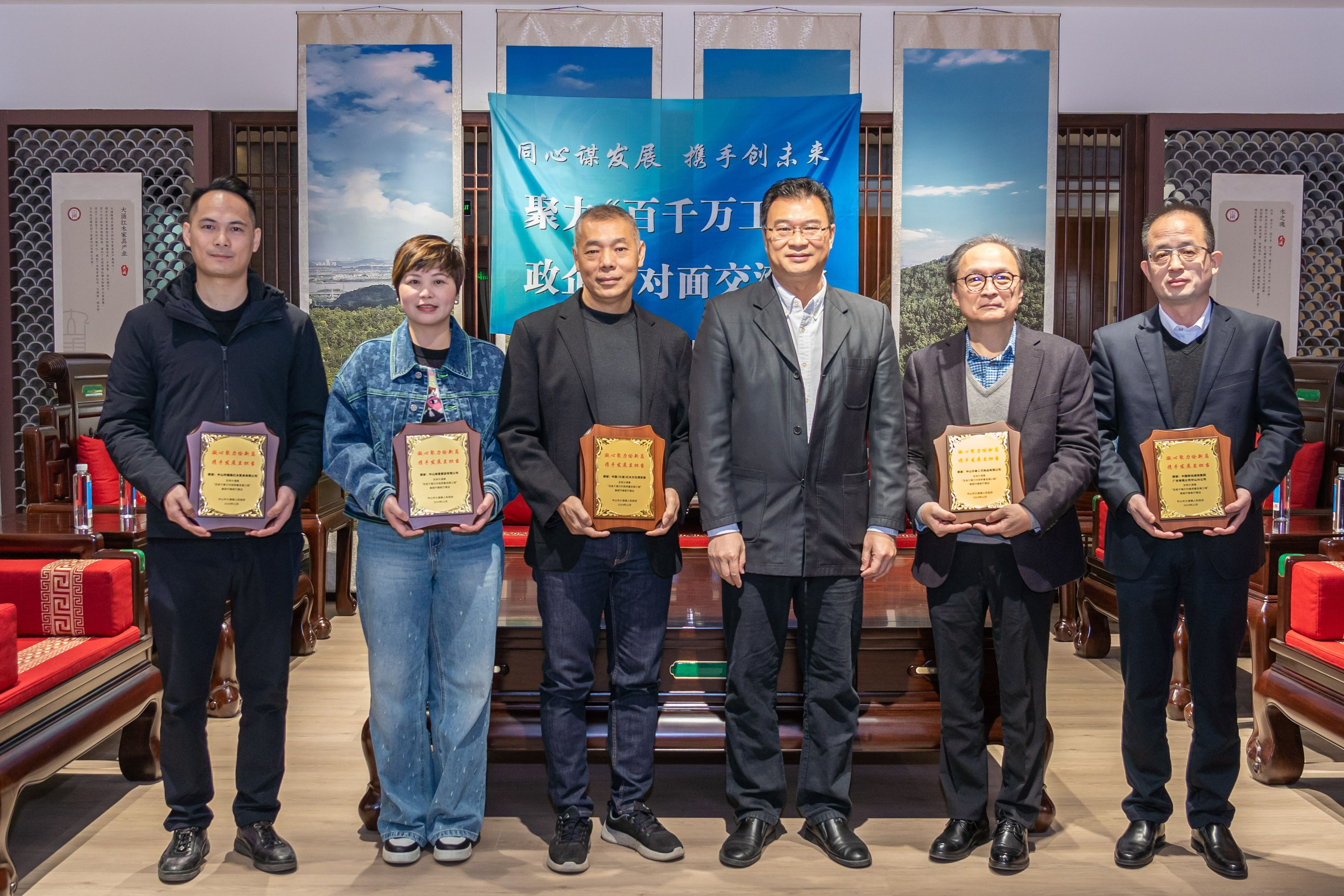 同心谋发展,携手创未来!12月25日上午,中山市大涌镇美丽圩镇客厅内高朋满座、暖意融融,一场特别的交流会在此进行。这场交流会聚焦共建共享“百千万工程”,邀请了红博城、维晋、华泰、檀荟、中国移动、大自然格瑞、锦和堂、中广测等8家企业代表,以及中山市工艺美术大师厉国阳等热心人士参加,大家与大涌镇主要领导面对面交流座谈,共话发展,共谋未来。