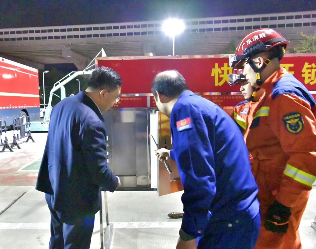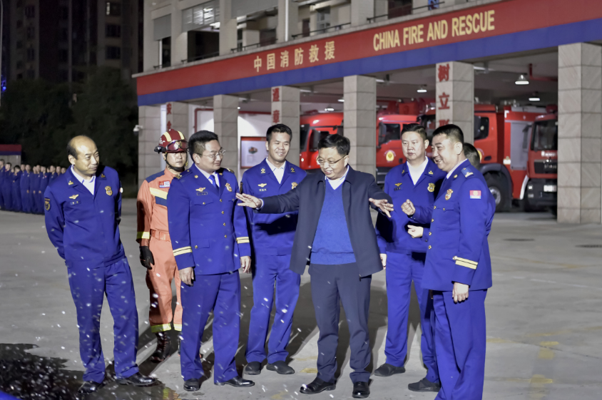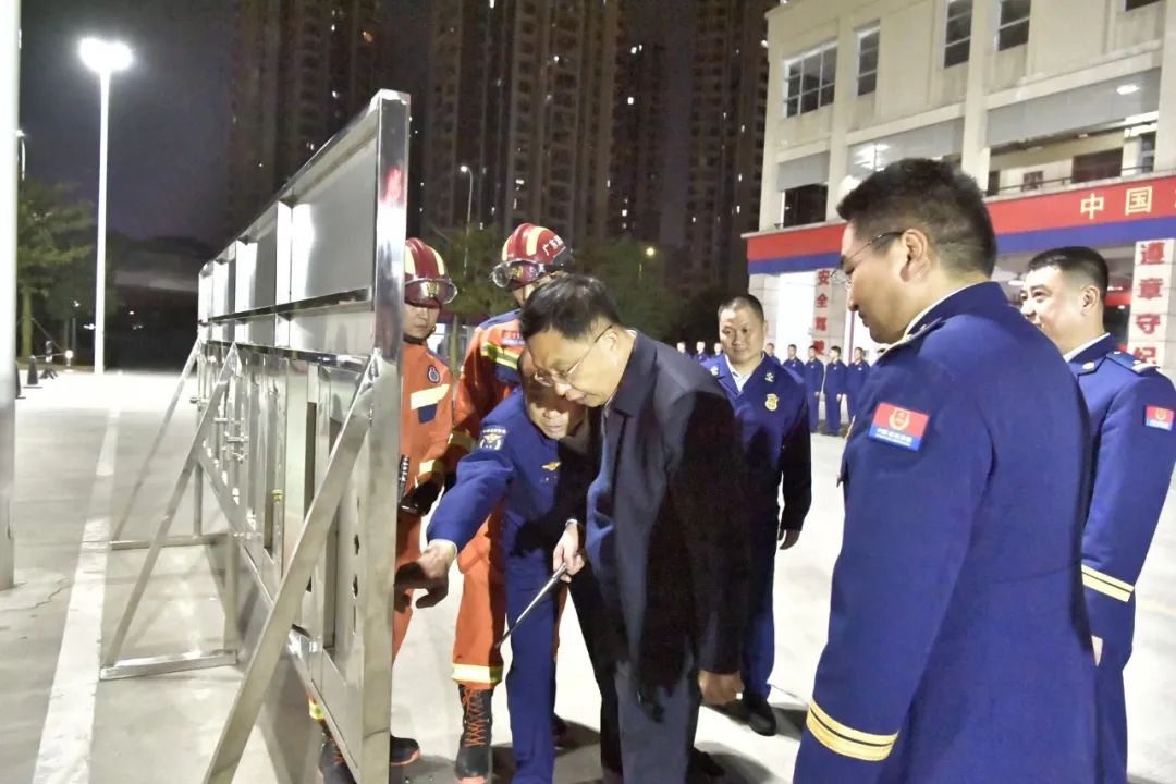 在永安消防站,叶红光副市长亲切慰问了指战员,并代表市委、市政府向坚守在一线的消防指战员致以诚挚的问候和衷心的感谢。来到器材展示区,叶红光副市长认真观摩了支队创新研发的国家专利——快速破锁装置的展示,详细了解各个不同型号的锁芯快速拆解的方法并亲自上手体验;随后观看了由指战员自主探索的新能源电动汽车火灾扑救操法,并给予了高度评价。