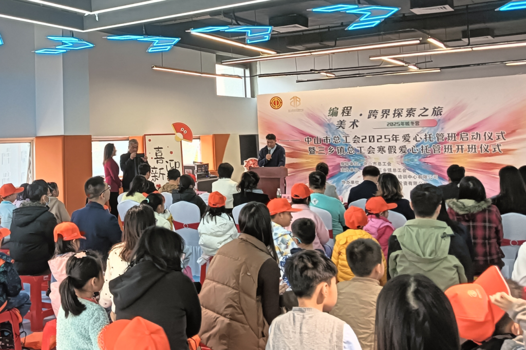 近日,中山市总工会2025年爱心托管班启动仪式暨三乡镇总工会寒假爱心托管班开班仪式在三乡镇嘉宝教育培训中心举行。托管班以“编程+美术·跨界探索之旅”为主题,共设两期课程,内容紧密围绕儿童成长的多元化需求,惠及职工子女100名。