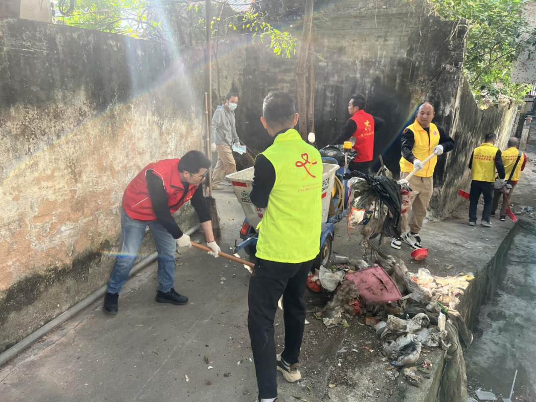 后山社区组织党员志愿者、“双联双助”单位中山公交集团城南第三党支部党员志愿者等人员在后山新涌附近一带开展后山社区爱国卫生志愿活动,对路面及绿化带垃圾进行清理,以“小切口”实现环境整治“大提升”,为居民营造舒适宜居的居住环境。