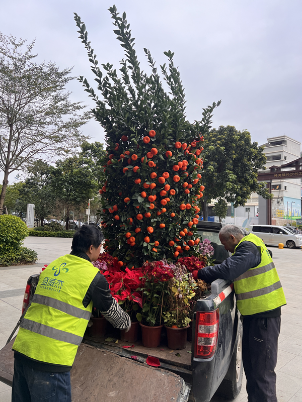 镇城市建设和管理局鼓励物业小区开启“小区自回收自利用”模式,解决传统集中收运运输成本高、植株存活率低等问题。凝星名都、南湾豪庭等小区积极响应,将回收到的年花年桔复植转化为绿植,实现资源就地转化,打造家门口的生态风景线。