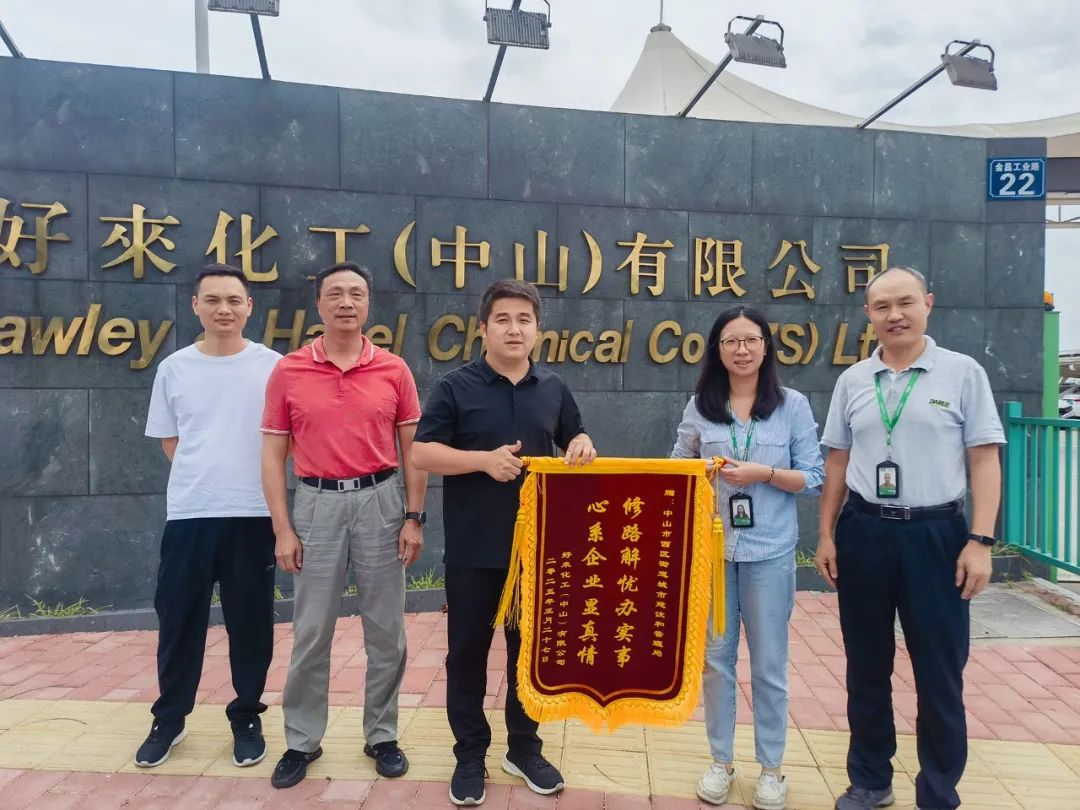 “感谢西区街道和施工单位在道路改造时,争分夺秒抢进度保质量,彻底解决了我们企业的运输难题!”近日,好来化工(中山)有限公司相关负责人将一面印有“修路解忧办实事,心系企业显真情”的锦旗赠送给西区街道城市建设和管理局,以表达对金昌工业路及周边道路提升工程的感谢。
