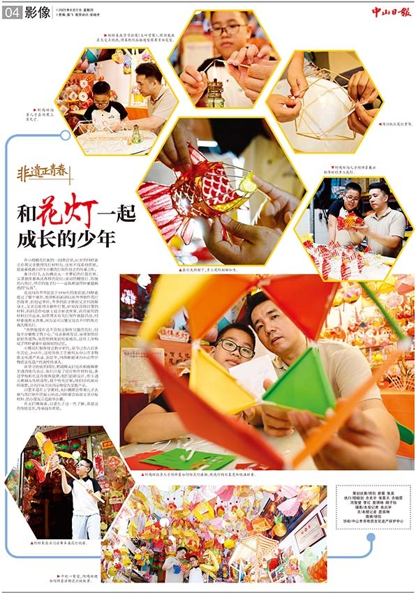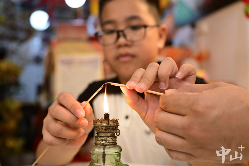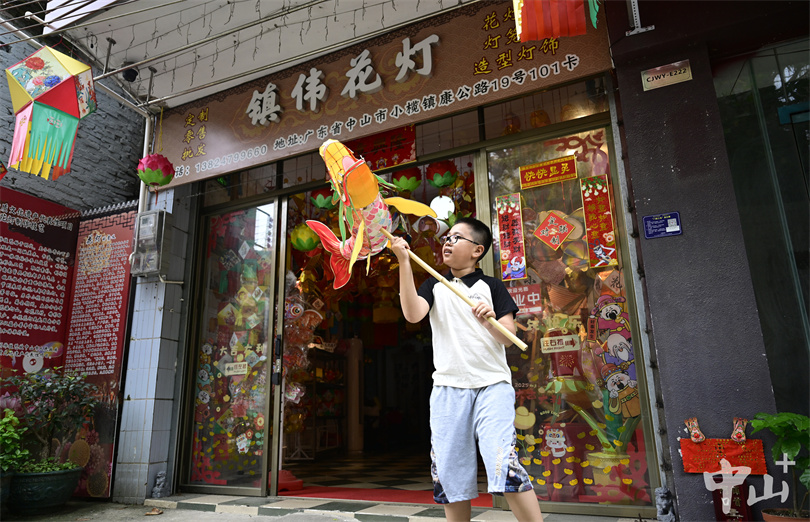 在小榄镇花灯街的一间老店里,11岁的何梓豪正在帮父亲整理花灯材料包。这里不仅是他的家,更是承载着六百年小榄花灯制作技艺的传承之所。