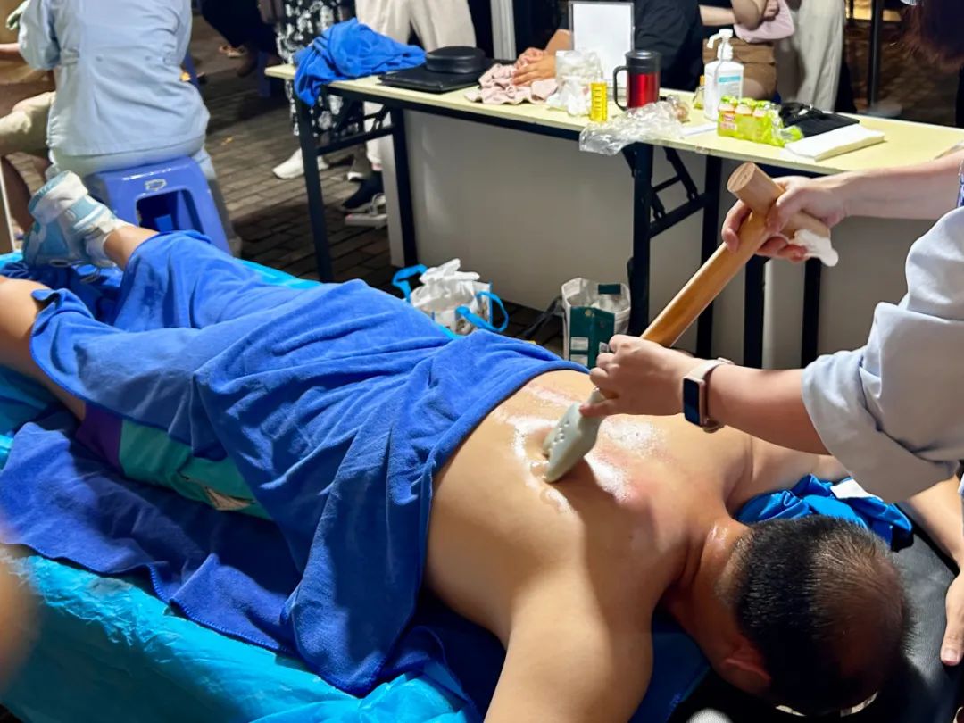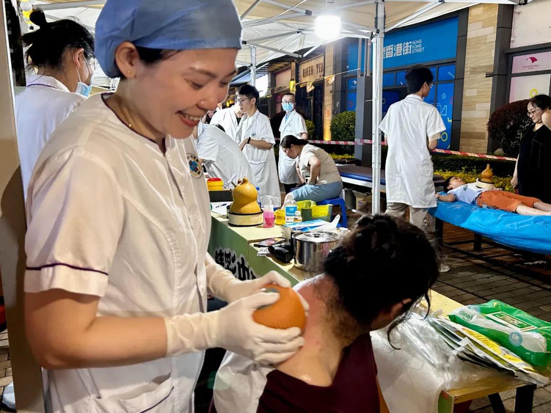 “被中医外治 “拿捏”了!”在体验了棍针拨筋疗法这项中医适宜技术后,市民彭先生打趣说道。当晚,浮针、杵针、颊针、葫芦灸、棍针拨筋疗法等约15项特色中医疗法亮相夜市,供市民免费体验。棍针拨筋疗法集刮痧、推拿、艾灸等多种技法为一体,借助棍针的器械,开展非介入的外治法,从而达到以痛为腧、以外治内、通则不痛的治疗效果。
