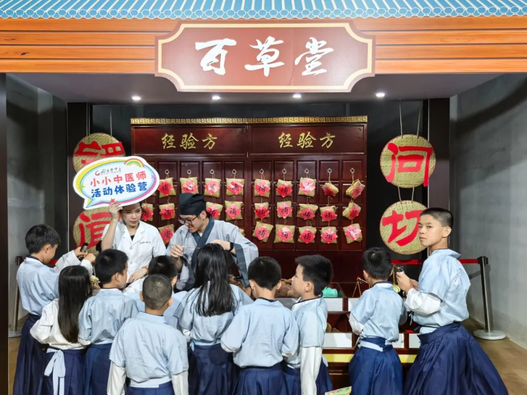 在“本潮纲目”百草堂主题体验区,古色古香的场景布置、精致可爱的中药道具、搭配趣味NPC互动环节,让孩子们沉浸式学习中医药知识。不少家长和孩子化身古代医者,在趣玩和互动中学习中医药知识,体验中医国潮文化。