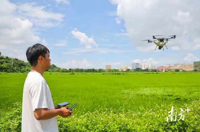稻米的清香混合着草木的气息,扑面而来。在南区福涌村,27岁的段龙冉,晒得一身黝黑,趿拉着沾满泥点的洞洞鞋,熟练地操控着田埂上的无人机。螺旋叶片的嗡鸣声打破了午后的宁静,这并非传统印象中“面朝黄土背朝天”的农耕图景,而是知识、技术与土地碰撞出的新乐章。