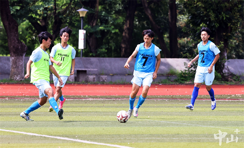 ▲男足队员在中山市实验中学足球场进行训练。