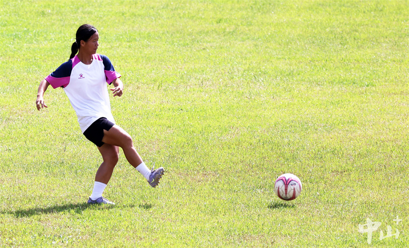 ▲绿茵场上,女足队员巾帼不让须眉。