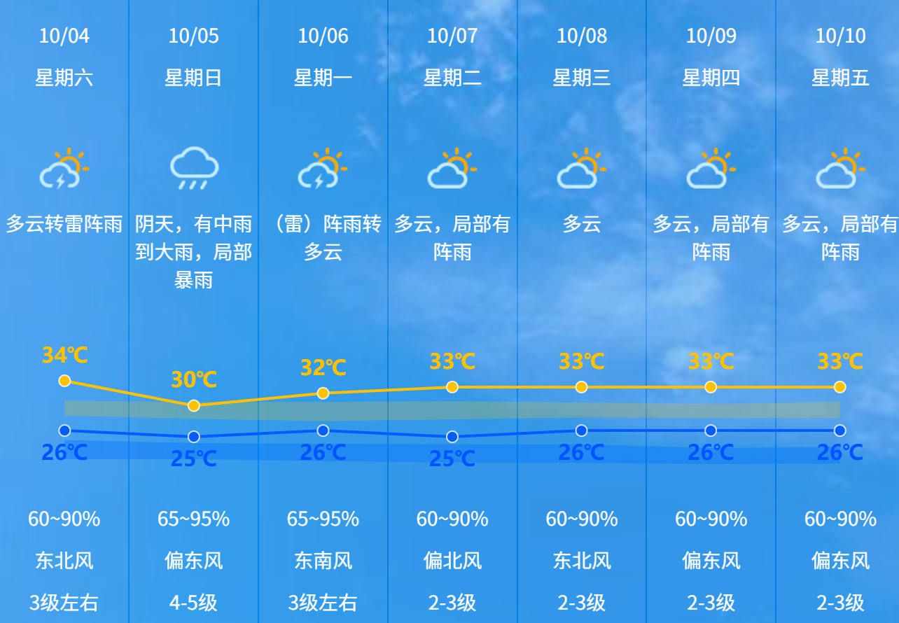 展望10月7-10日中山以多云为主,局部有阵雨。