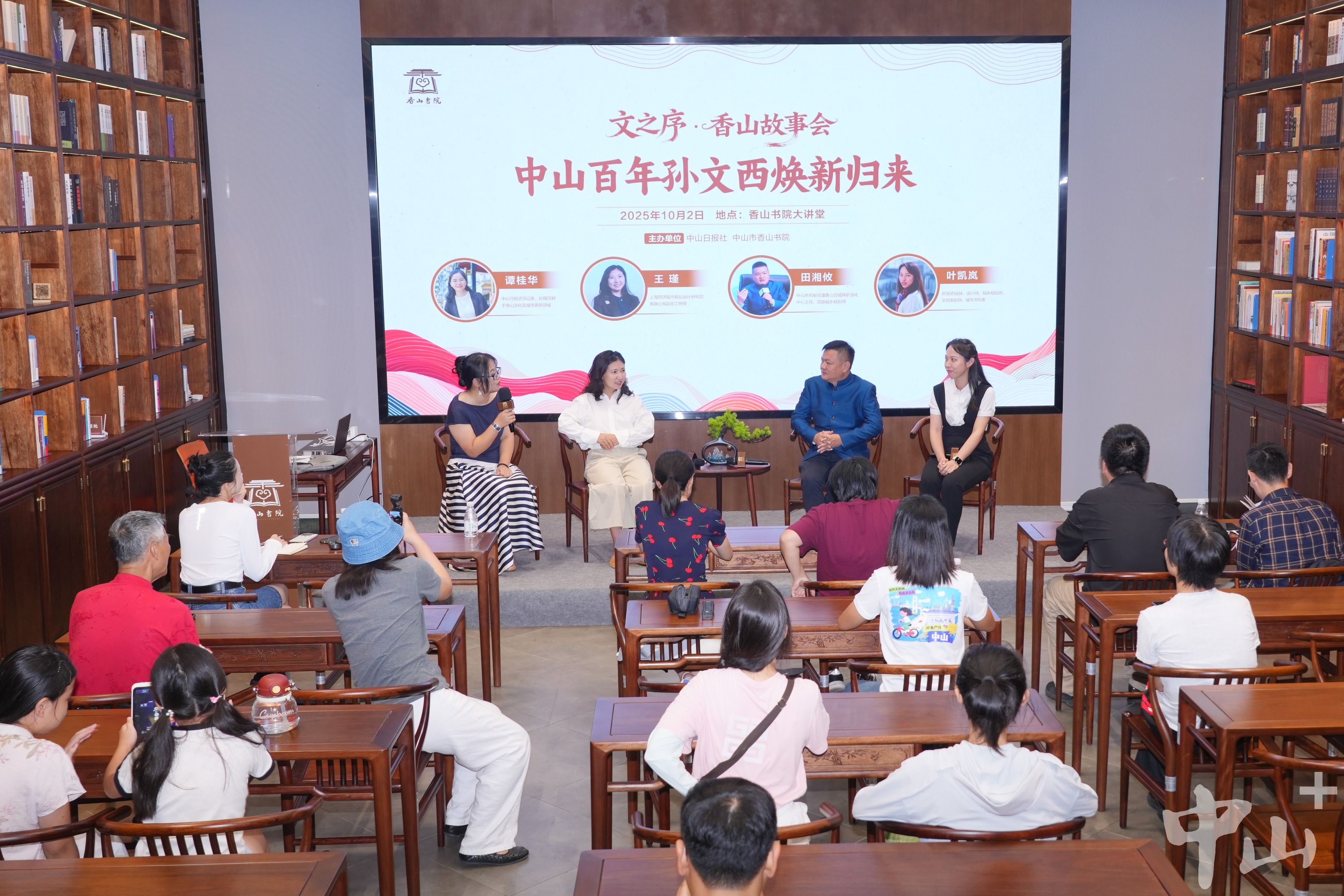 10月2日晚,中山市石岐街道香山古城保护活化中心主任田湘攸、香山古城项目设计师——上海同济城市规划设计研究院有限公司副总工程师王瑾、长期深耕本土文化推广的城乡规划师叶凯岚作客香山书院大讲堂“文之序・香山故事会”,和中山日报资深文化记者谭桂华深度对谈,探讨从一条街到一座城,孙文西路步行街的活化焕新到底承载着什么,又探索到了什么,它将带领香山古城活化走向何方?